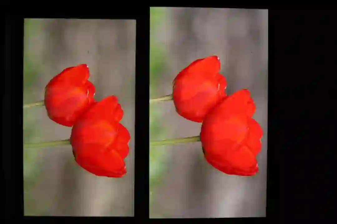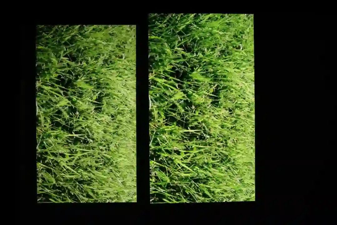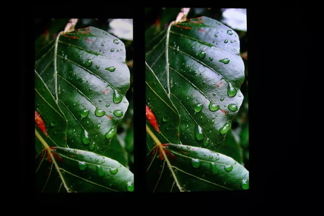 其实你们能猜出来就见鬼了。3 个图片显示区域一样的话,精致度是完全一样的。本来就是一个硬件拍出来的。那么像素是不是纯忽悠呢?也不是,如果我们缩放到 100% 的大小,可以看到 5000 万的明显可以放大的更多。或者说放大到这么大的话,没有提前劣化。这就是高像素画面的作用了。实际用途就是商业上巨幅海报的打印,或者普通消费者拍微距。拍一个虫子,放大很多的时候能看的清楚一点。具体实现方法就是插值法。前置镜头也能输出 2400 万像素。简单可以理解成给 1200 万像素的照片插入 1200 万个颜色的小方块,对照着看不出错就行。实际成像就是 1200 万像素,普通照相没必要去改,占空间特别大。超清画质其实是 4800 多万像素,相当于一个像素乘以 4。放很大也不容易出现马赛克。