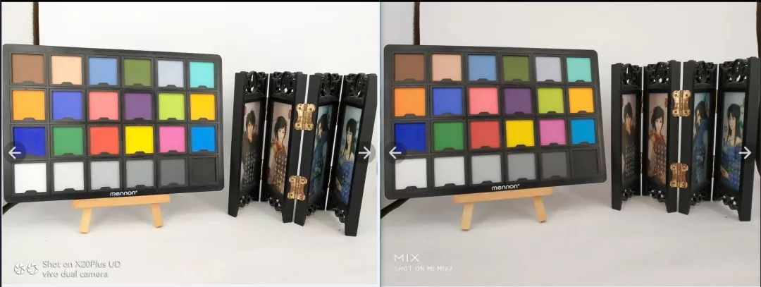 色彩方面 vivo 虽然艳,但是色准没翻车。小米偏冷了。华为就不说了。