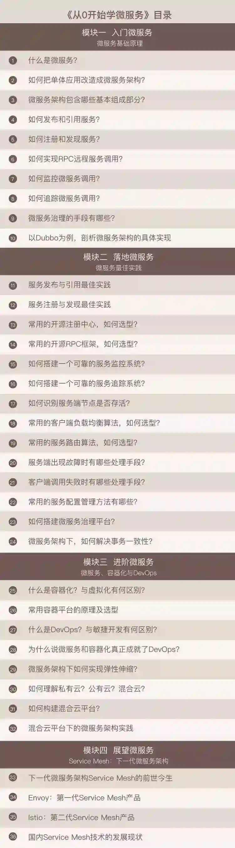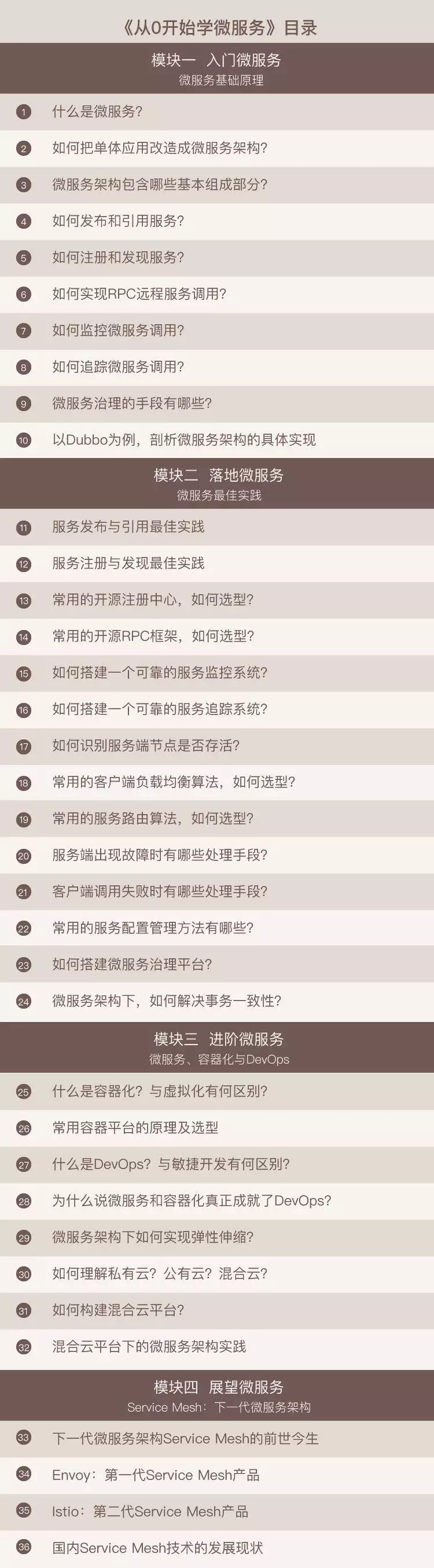 作为后端架构师,在网上调研了一圈,还是觉得微博技术专家胡忠想的《从0开始学微服务》更体系化,更能落地一些,并且老胡在微博的实战经验非常丰富,故在此推荐给大家。