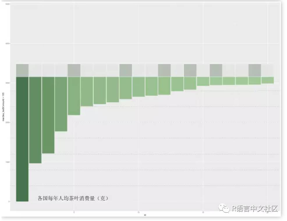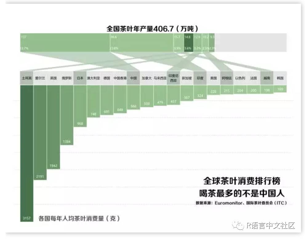 annotate("text",x =5,y=80,label="各国每年人均茶叶消费量(克)",family="myfzhzh",size=11,colour="#515551")+