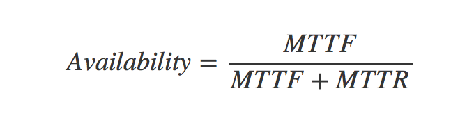 我们知道,容错主要是为了可用性,那么,我们是怎样计算一个系统的可用性的呢?下面是一个工业界里使用的一个公式: