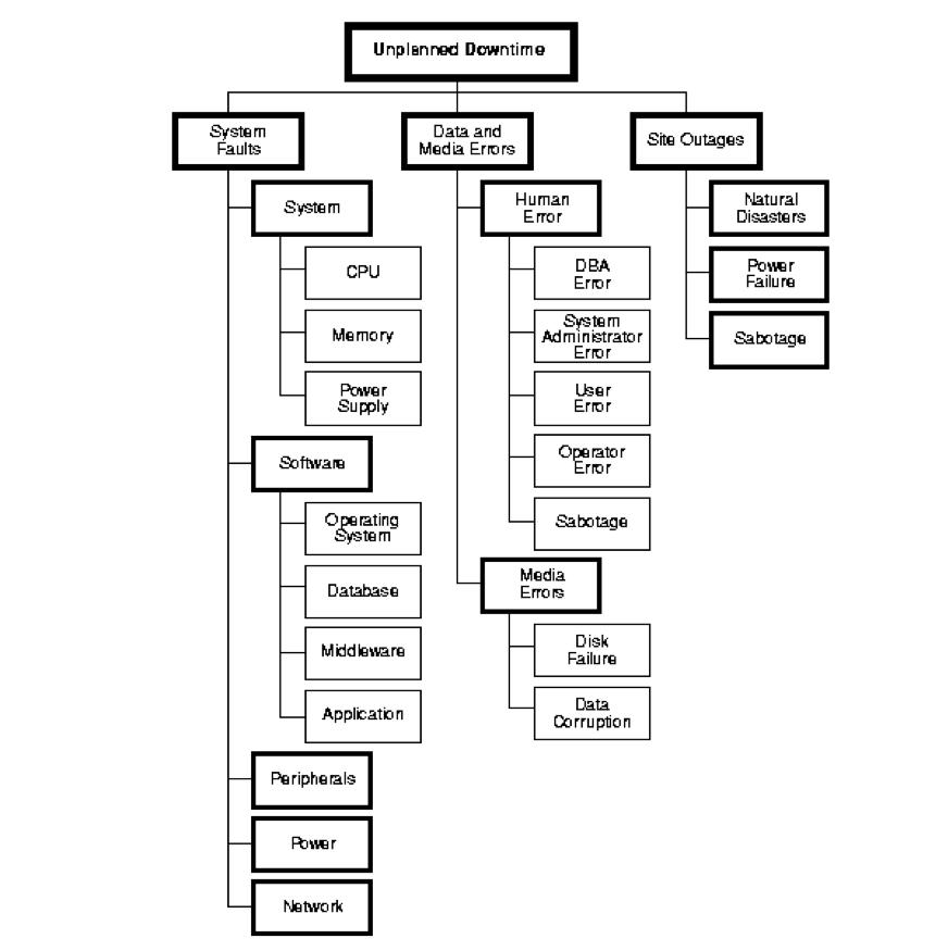 无计划的宕机原因。下图来自 Oracle 的 High Availability Concepts and Best Practices。