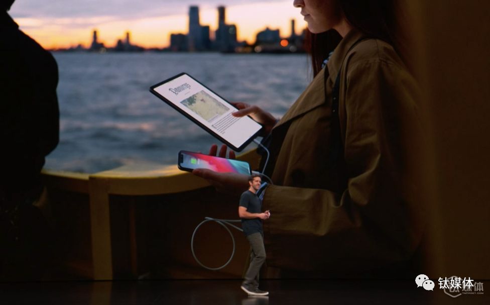 有了 7nm 仿生芯片 A12X 加持,苹果宣称性能超越市面上 92% 便携式笔记本,最高拥有 1TB 存储空间,似乎是在追随东半球最第二好用手机的配置。终于用上了业界主流的 USB-C 接口,并且能够反向给任何设备充电——官方提供的数据是 29.37/36.71 瓦特小时,如果按照 5V 电压计算,大概相当于 5800mAh 以及 7300mAh 的移动电源,基本上够给最新的 iPhone Xs MAX 1.5 次左右。