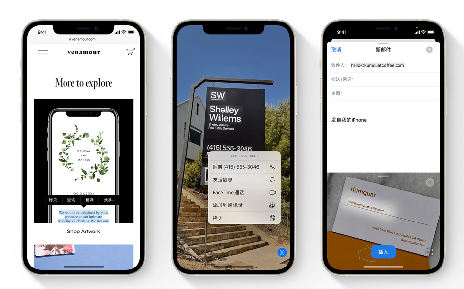 实况文本功能适用于照片 app、截屏、快速查看、Safari 浏览器, 以及用相机 app 进行的实时预览……在配备 A12 仿生或后续芯片的 iPhone 上提供。