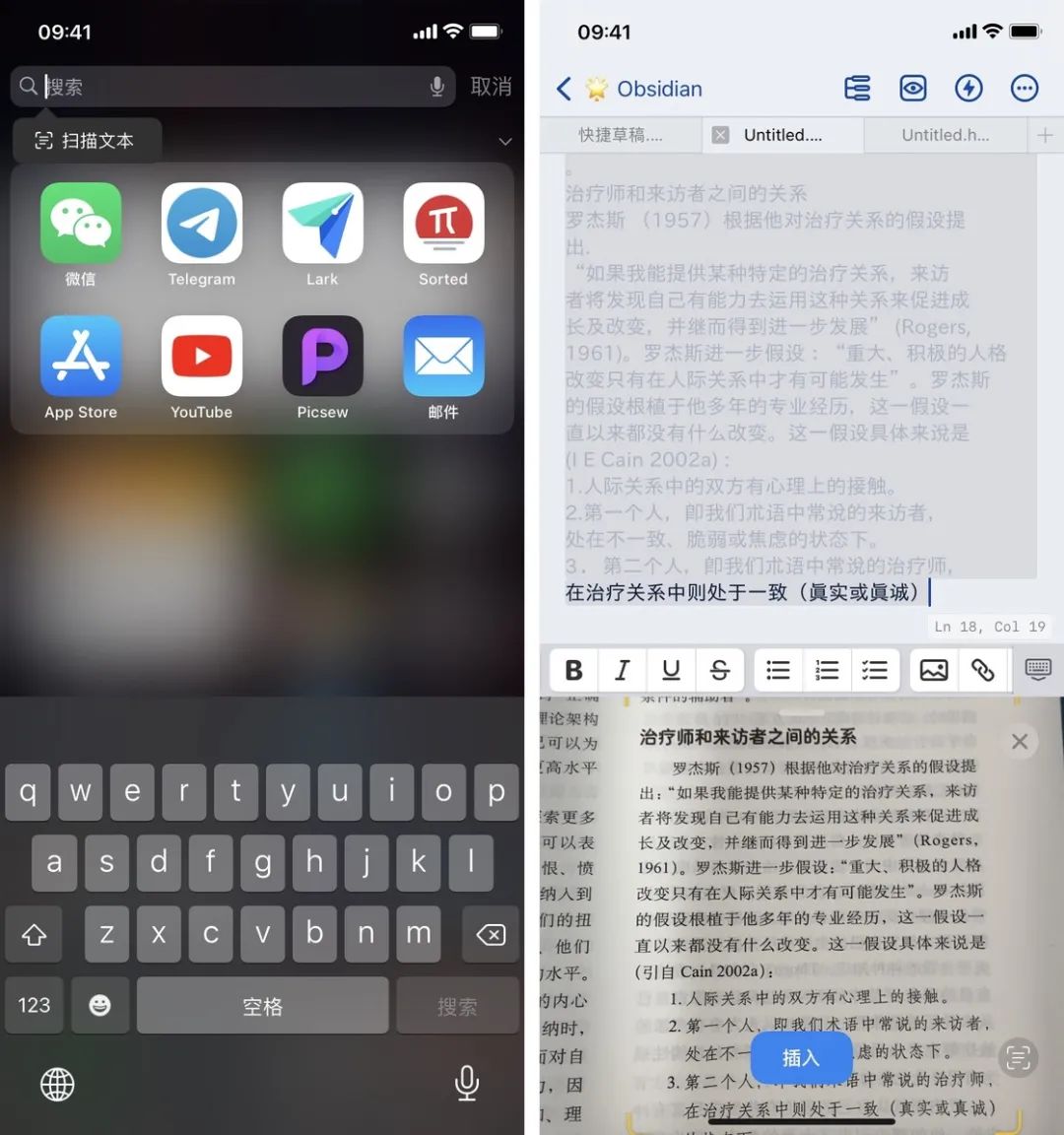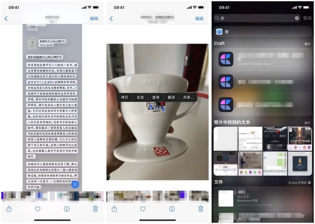 这一功能已经在新系统发布后被众多笔记、编辑器应用支持,这也意味着,我们可以在移动手机镜头的过程中就轻松输入书本上或屏幕上的文字。