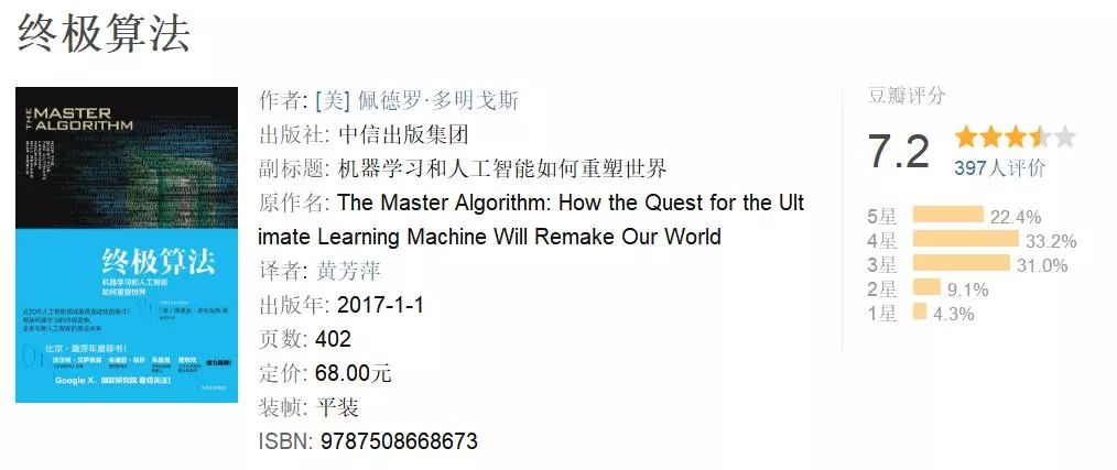 任何希望了解 AI 和机器学习的人士都应该阅读一下 Pedro Domingos 的《终极算法》一书。正如此书序里说的:围绕大数据以及机器学习的讨论充满争议,如果你对此感到好奇,且怀疑有比论文上看到的更为深层次的东西,那么这本书就是你进行革命的指南。