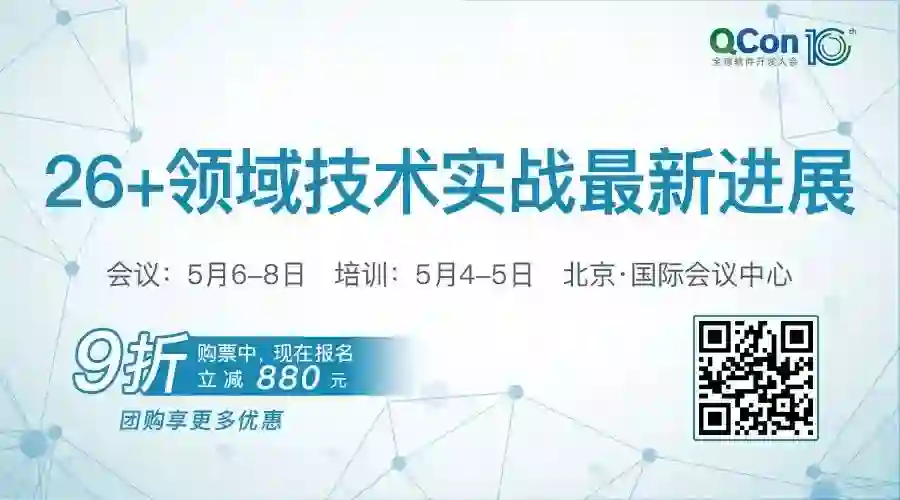 目前大会 9 折 报名中,立减 880 元。点击 「阅读原文」或识别二维码了解 QCon 十周年的精心策划。有任何问题欢迎联系票务小姐姐 Ring:电话 010-53935761,微信 qcon-0410。