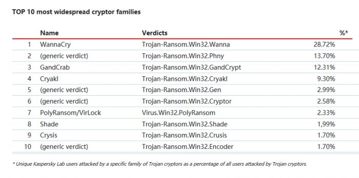 根据卡巴基斯的数据,WannaCry 占到了 28% 的勒索软件攻击。WannaCry 的幕后攻击者被认为是朝鲜的黑客组织。