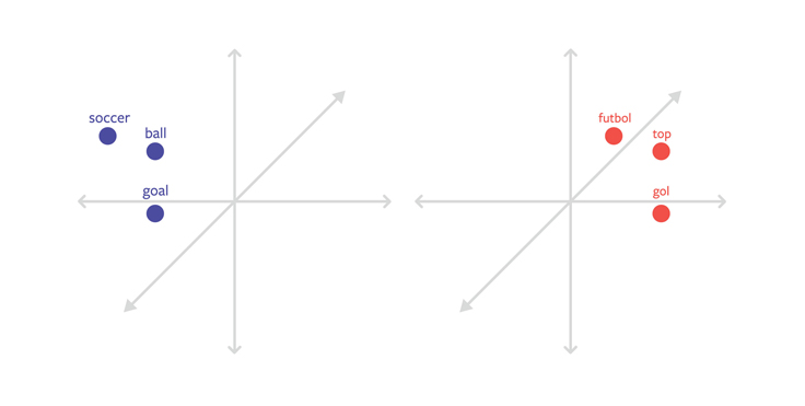实现多语言文本分类的一种方法是开发多语言词嵌入向量。利用这种技术,每种语言的词嵌入都存在于同一个向量空间中,且不同语言间语义相似的词在向量空间中距离相近。例如,土耳其语中的「futbol」和英语中的「scoccer」在嵌入空间中距离非常近,因为它们在不同语言中代表着相同的意思。