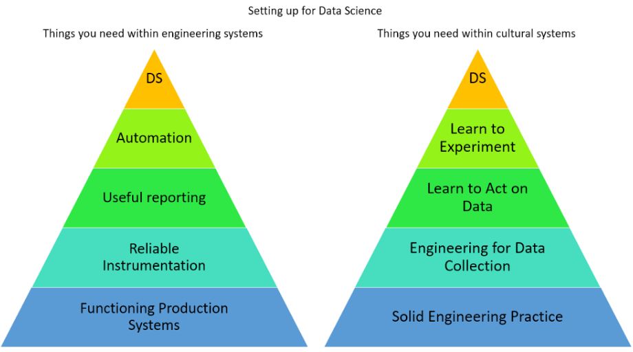 作为第一个被雇用为处理数据的人,金字塔的任何一层都不太可能是坚固的。这是一个多年,跨职能,全公司的努力才得以实现。并行培养这些技能是工作的重要部分。