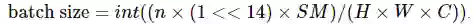 其中,n 是整数,SM 是 GPU 内核的数量(例如,V100 为 80,RTX 2080 Ti 为 68)。