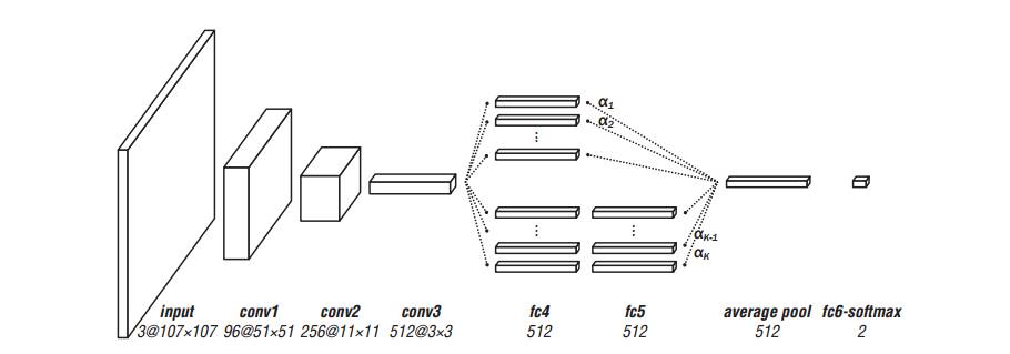 (3)分支之后是average pool层和fc-softmax层,它们的作用是用来分类,神经网络最终输出的是样本是目标的概率和不是目标的概率。