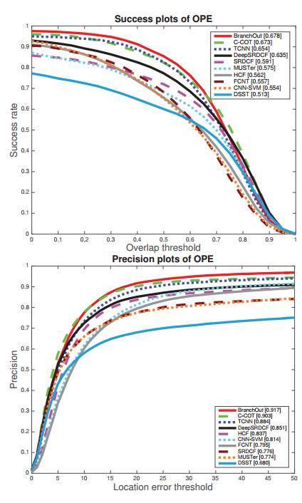 在OTB100数据集上做了实验,结果如下图所示,实验结果表明BranchOut达到了非常好的性能。