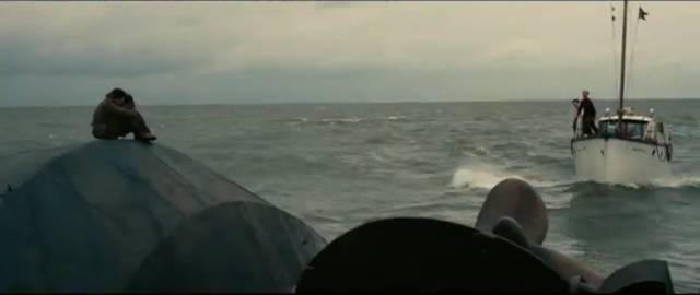 路上三人遇到一艘沉没的扫雷舰,救下了唯一的生还者。这个人哆哆嗦嗦,完全不能说话了。