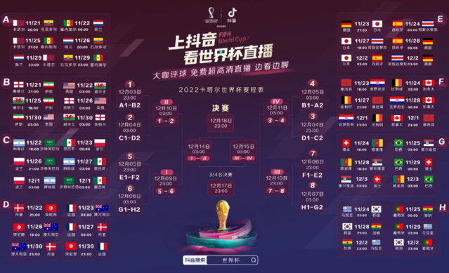 抖音官方宣布,用户可以在抖音免费看 2022 世界杯 4K 直播了。作为 2022 世界杯持权转播商、中央广播电视总台 2022 世界杯官方直播合作伙伴,抖音直播将会覆盖 28 天全赛程,用户在抖音 App 搜索“世界杯”进入专题页,即可观赛。据了解,抖音将在世界杯期间上线多种互动活动:用户在看球的同时,能邀请好友使用“边看边聊”功能,在赛事直播间语音聊球,就像是看剧时发的弹幕,让用户观看世界杯时互动性更强。