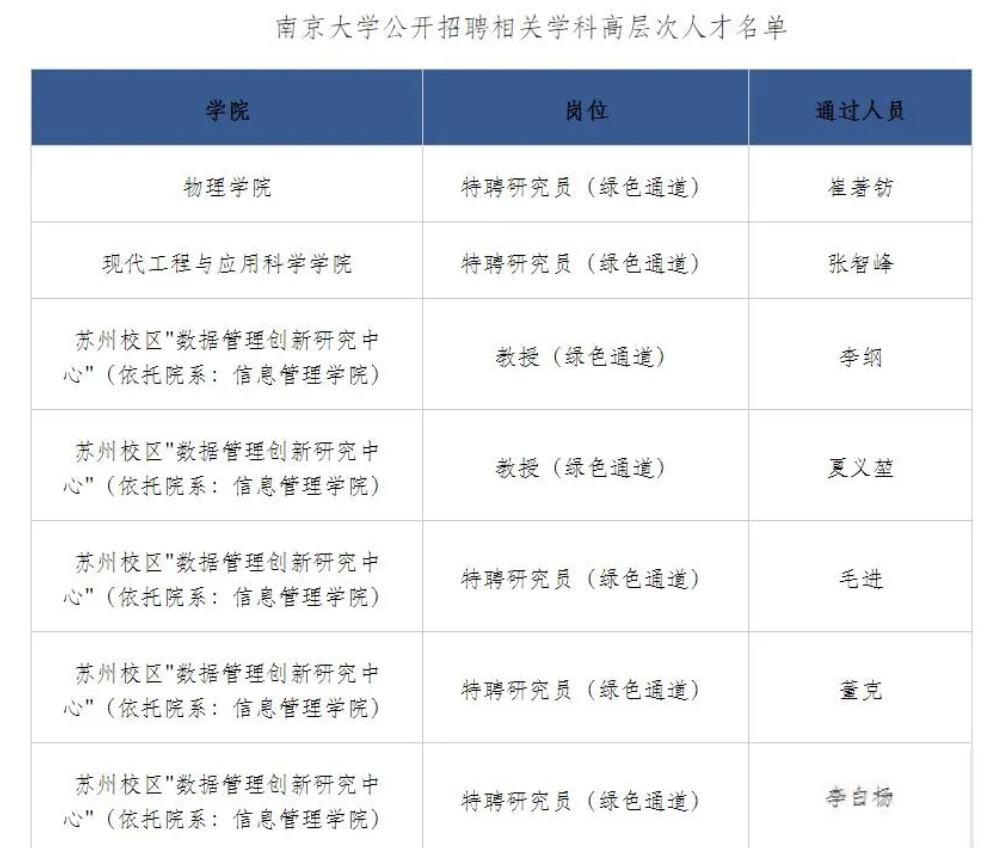 该网帖表示:“近日,南京大学人力资源处发布了2021年第31批公开招聘相关学科高层次人才名单,可以看到南京大学苏州校区‘数据管理创新研究中心’的大手笔,一口气挖走了武大信管学科五人,这样成建制挖人还是很少见到的。”