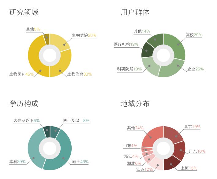 生物探索用户涵盖生物医药产业链各个环节,包括科学研究人员、企业研发技术人员、企业高管、专家教授、销售市场、风险投资等。