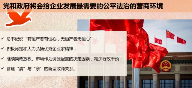 第一,党和政府会给企业发展所需要的公平法治的营商环境。