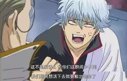 所以,《银魂》打动我们的不是简单的嘴炮和毒鸡汤。而是,当我们对着“阿姆斯特朗回转加速喷气式阿姆斯特朗炮”露出猥琐笑容的时候,我们知道纯真的少年时代已然远去。通过银桑,我们确认了自己日渐长成。我们越来越理解他肩上所背负的担子,理解他油滑与世故背后的真情,也理解他颓废和荒唐背后的担当。就如同理解担负起其他人人生之后的我们自己。