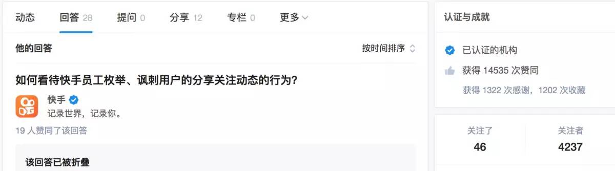 引发他对知乎变现探索的导火索,是快手在知乎开了官方机构号,尤其是快手在知乎上这篇情怀满满的回答。