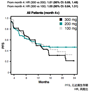 数据截止(2017年9月),gBRCAmut队列(n=136)的平均暴露时间和中位暴露时间分别为15.6和13 mos(范围0-41 mos),非gBRCAmut队列(n=231)的平均暴露时间和中位暴露时间分别为11和7 mos(范围0-41 mos)。对不良反应的管理需要对剂量进行调整。在试验过程中,剂量调整普遍发生,且不影响疗效。