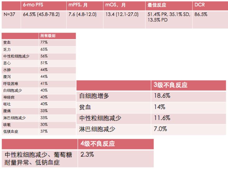 结果筛查了55例患者,42例接受治疗,37例患者可评估疗效,目前还有10例正在治疗中。平均年龄63岁(39-77)。