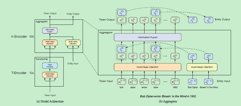 最终的输出为最顶层的Aggregator的token embedding和entity embedding。