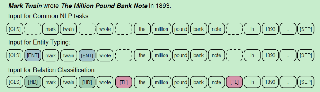 为了使得模型可以更广泛地适用于不同的NLP任务,作者也学习BERT设计了不同的特殊的token: