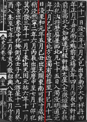 《宋史志卷九》:“至和元年五月己丑,出天关东南可数寸,岁余稍没。”
