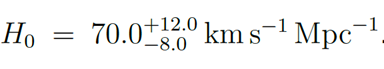 其中v是由光学观测得到的NGC4993的退行速度, 而d是 GW170817 由引力波测到的的距离。
