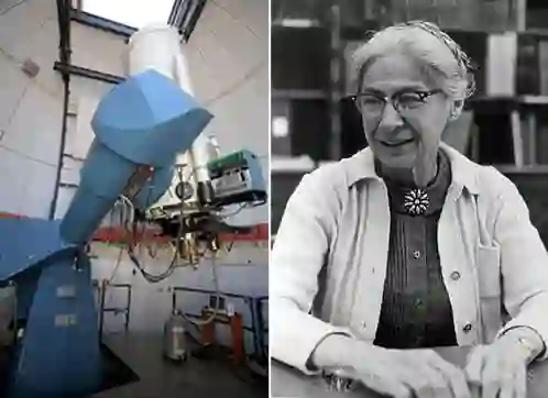 1971年投入使用的Swope望远镜 (左)。该望远镜坐落于智利,是美国卡内基天文研究院的天文学家Henrietta Swope (1902-1980,右图) 捐资建造的。