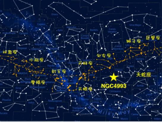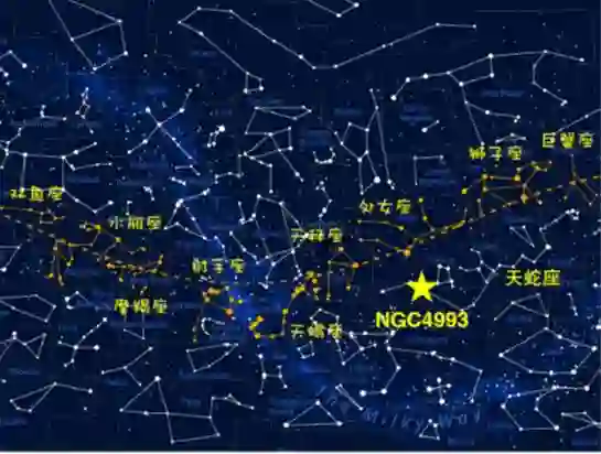 NGC4993是德国天文学家Wilheml Hershel (1738-1822) 在1789年发现的。 该星系距离地球1亿3千万光年,方向上位于长蛇座。