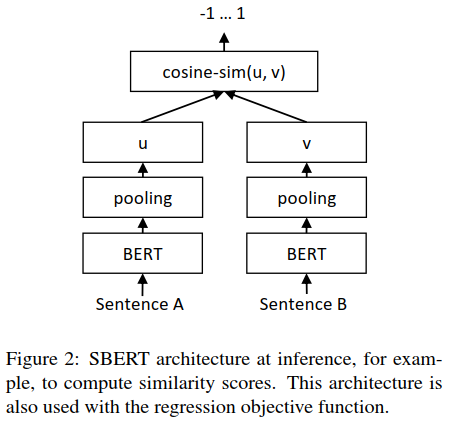 BERT和RoBERTa在文本语义相似度等句子对的回归任务上,已经达到了SOTA的结果。但是,它们都需要把两个句子同时喂到网络中,这样会导致巨大的计算开销:从10000个句子中找出最相似的句子对,大概需要5000万(C100002=49,995,000)个推理计算,在V100GPU上耗时约65个小时。这种结构使得BERT不适合语义相似度搜索,同样也不适合无监督任务(例如:聚类)。