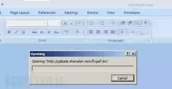 近期我们发现有部分真实文件格式是Docx格式的文档加入了CVE-2017-0199的漏洞利用,攻击者非常巧妙的将CVE-2017-0199漏洞的RTF文件作为一个源嵌入到了Docx格式的文档中,这样导致docx文件在打开时是自动去远程获取包含0199漏洞的rtf文件,再触发后面的一连串攻击行为,这样的攻击增加了安全软件的查杀难度,一些杀毒软件毫无察觉!