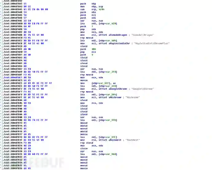 Shell.exe会内存解密执行Loki Bot功能,这时Loki Bot木马会窃取各种软件的信息。
