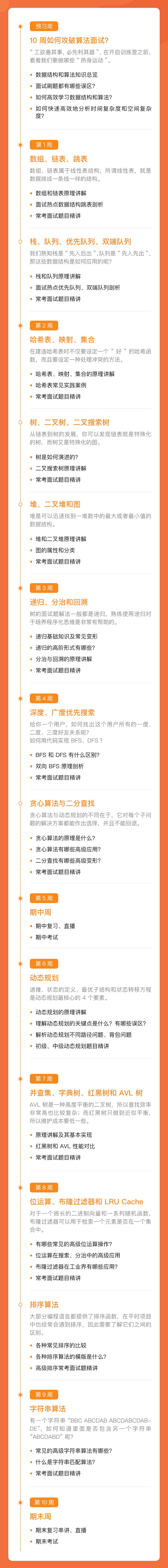 经过多次迭代,算法训练营已经可以满足程序员跳槽、升职、加薪、提升编程内功的需求。在内容方面,它不仅涵盖常见的算法面试题精讲,还包括数据结构和算法的理论知识的讲解、算法在实际工程上的应用,加入了很多高级数据结构(比如 红黑树、AVL、跳表),以及很多高阶算法,一次性将数据结构和算法的方方面面讲透。