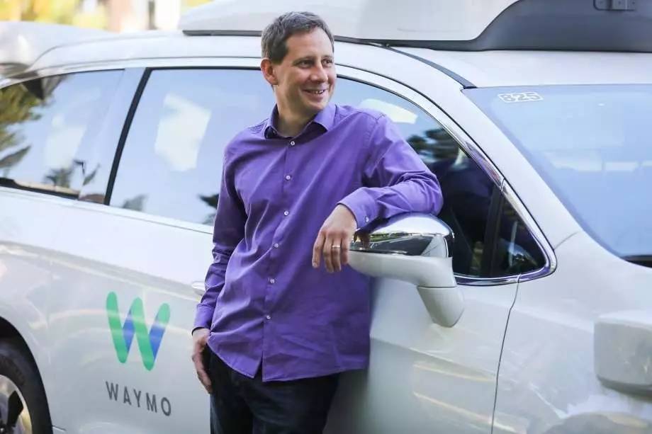 图 8 今年 7 月,Waymo 公司自动驾驶技术总监德米特里·多尔戈夫(Dmitri Dolgov)在加州山景城和一辆 Waymo 自动汽车一起亮相