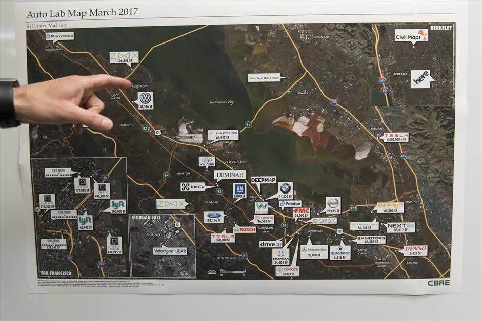 图 3 全球自动驾驶技术公司在湾区的分布图