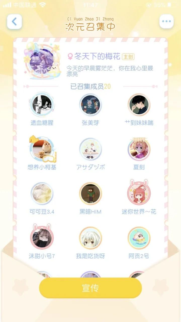 在小肚皮里召集20个人,就可以创建属于自己的次元。