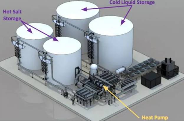 Google旗下Google X实验室正在开发一种全新储存可再生能源的系统,该系统具有通过管道连接到热泵的四个圆柱形存储罐,两个充满盐,而另外两个充满防冻液或烃液。该系统以电力的形式吸收能量,产生两股空气:加热盐的热空气和冷冻防冻剂的冷空气。然后翻转开关,从而反过来:冷热空气“彼此冲向”,这产生了足够大的阵风,以便在需要时旋转涡轮发电,并且系统可以将能量储存数小时或数天。