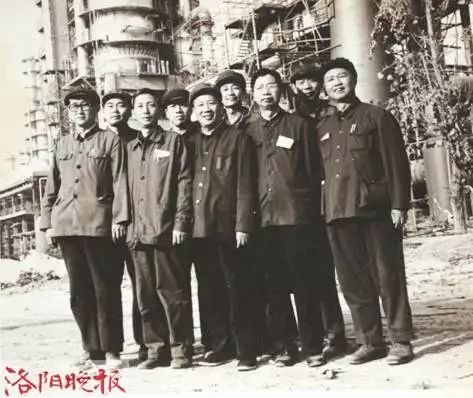 1982年陈俊武与同事在兰州50万吨同轴催化裂化装置前合影