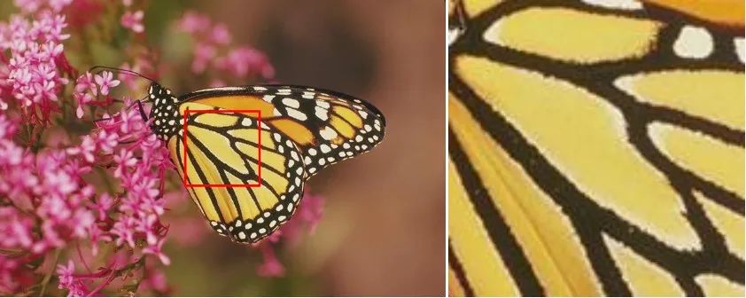 图2. (a)是原始图像。(b)是对(a)图施加一个由特定攻击算法产生的肉眼可见的“马赛克”式的扰动。与(a)相比,(b)的语义信息不变(“蝴蝶”),但是该扰动却造成(b)图感知质量的下降