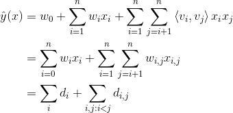 向量分解机(Factorization Machines, FM)是一种应用较为广泛的推荐模型,其发明者Steffen Rendle目前供职于Google。FM是对传统LR模型在处理高阶交互特征问题上的优化和改进:LR通过特征交叉的方式,将组合后的特征作为新特征加入到模型中,模型复杂度为O(N^2)(N为交互特征的数量,下同),记忆性较强而泛化性偏弱;FM通过将特征表征为隐向量,通过隐向量的相似度(內积)来表示特征关联这种方式来巧妙地提升模型的泛化能力;FM模型的复杂度为O(N*k)(k为隐向量维度超参)。