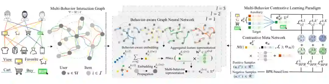 考虑到不同的用户会有不同的多行为偏好,为了有效地建模个性化的多行为关联性,CML 模型通过将基于元学习的编码器引入到对比学习框架中,从而实现用户个性化的多行为信息聚合。