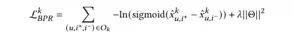 Recommendation 任务的优化是通过 CML 输出的 user 和 item 的 embedding,结合,BPR 损失函数,加上用于防止过拟合的 L2 正则进行训练优化: