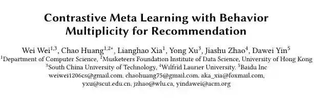 Contrastive Meta Learning with Behavior Multiplicity for Recommendation