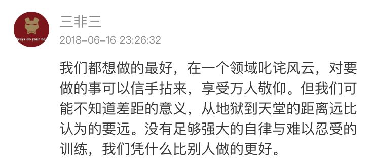 是选择过积极自律,还是得过且过的人生?对命运还有要求的你,请不要泄气。因为一点一滴的努力,早晚会成为别人的望尘莫及。