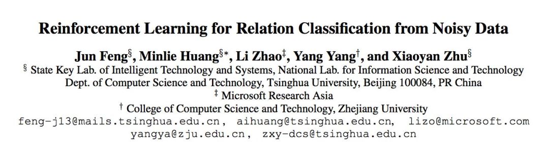 论文 | Reinforcement Learning for Relation Classification from Noisy Data