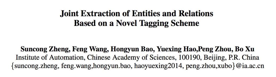 论文 | Joint Extraction of Entities and Relations Based on a Novel Tagging Scheme
